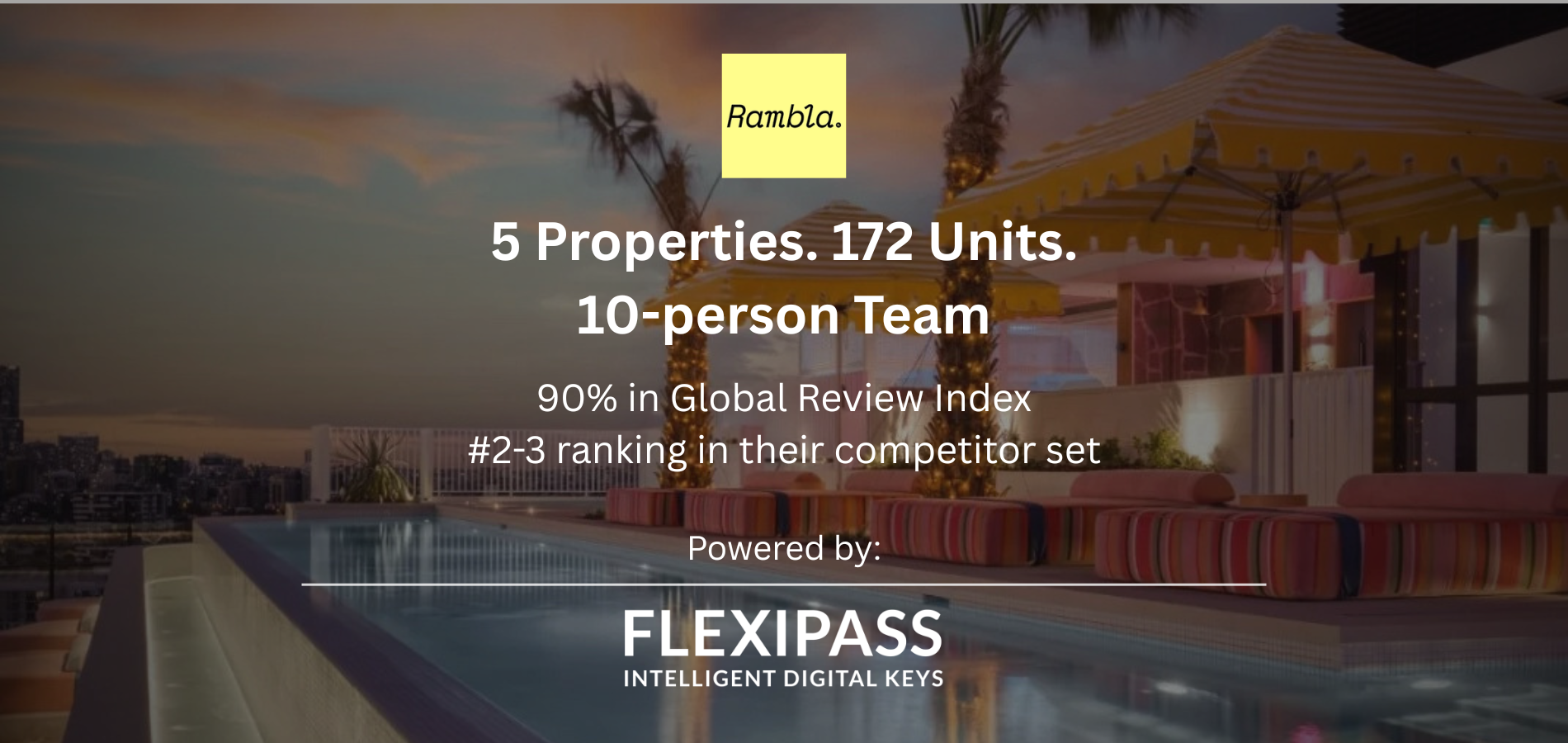 Rambla has built a portfolio of five serviced apartment properties across Melbourne and Brisbane — 172 units, near-90% guest review scores, and a team of just 10 people — all powered by FLEXIPASS mobile keys for contactless, frictionless check-in.